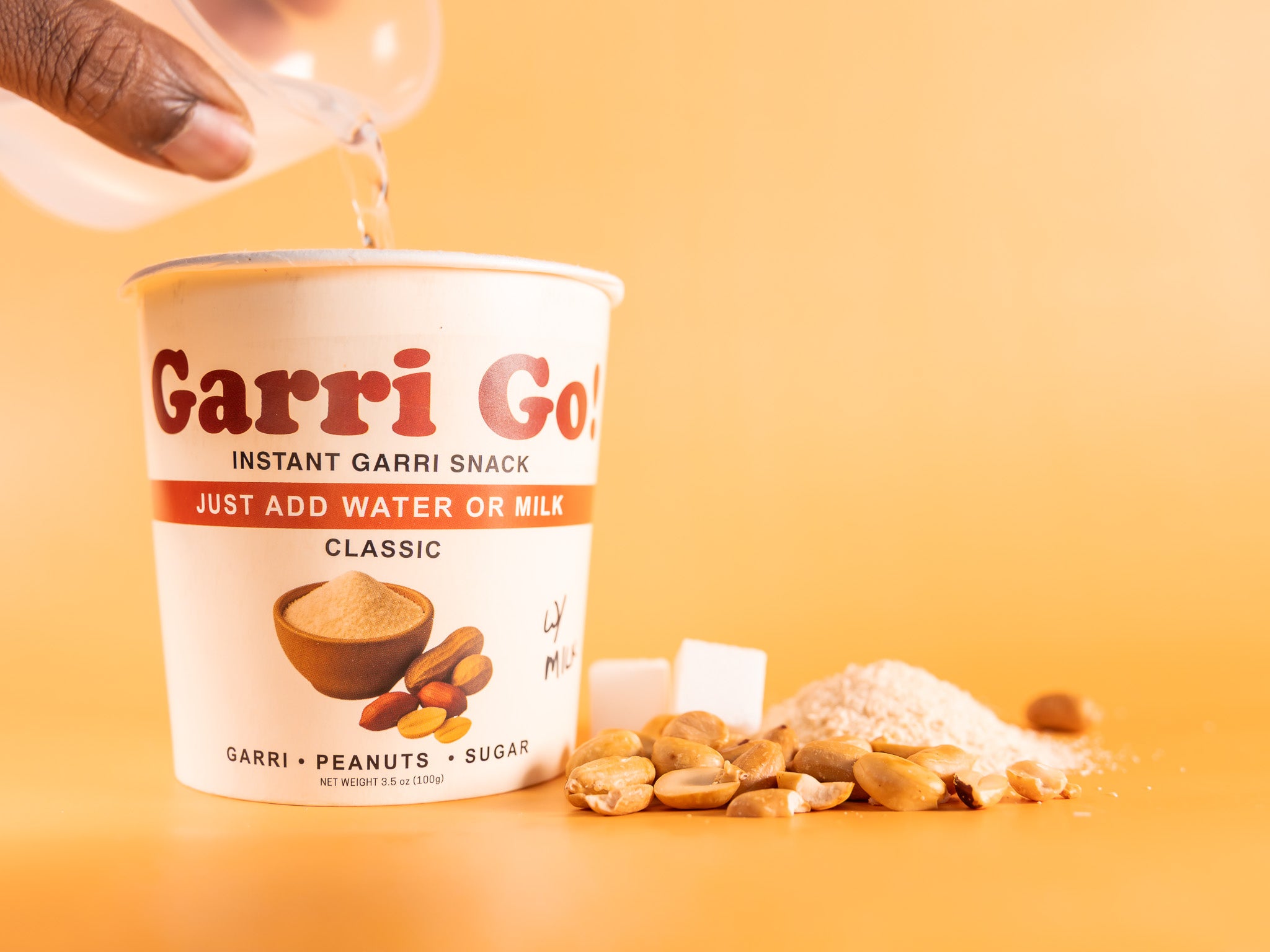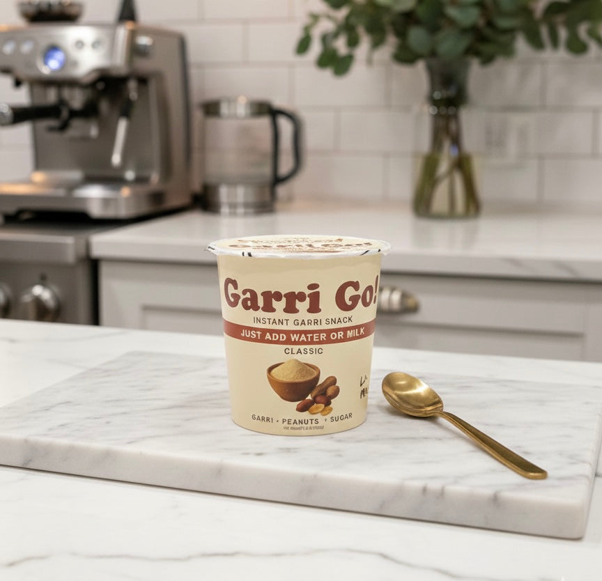 Garri (Cassava), Peanuts, Sugar, Milk Powder, Salt, and our Special Garri Go! flavor blend
